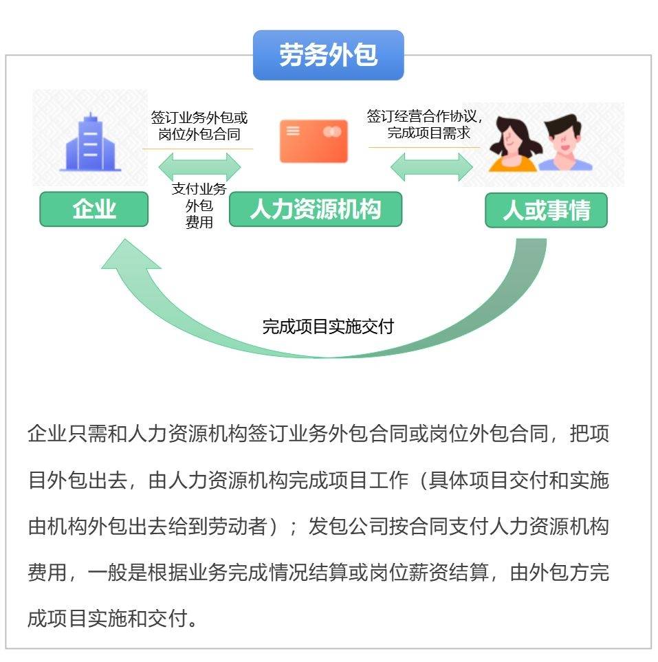2、劳务外包 劳务外包是用工单位将特定的事务工作,外包给一个公司来完成,用人单位与公司员工没有任何关系,不用承担用工风险。 对于我们个人来说,最常见的劳务外包就是家里装修,将装修事务全部外包给施工单位。 举例: 某公司没有专业的财务部门,委托人力资源管理公司帮助税务核算,人力资源管理公司并不一定要派人到该公司上班,只需签订业务外包合同或岗位外包合同,人力资源管理公司完成“税务核算”的工作,发包公司按合同支付人力资源管理公司费用,一般是根据业务完成情况结算或岗位薪资结算,这属于劳务外包。 (1)社保、公积金的缴纳区别 劳务外包是以发包公司的名义为员工办理社保公积金登记,由人力资源外包公司代为发放。 (2)法律适用 《合同法》 (3)用工风险 发包人与承包人之间是平等的合同关系,与劳动者之间不存在法律关系,发包人无须对从事外包劳务的劳动者承担用工风险。 (4)对劳动者的管理权限 从事外包劳务的劳动者,由外包公司直接管理,发包单位不得直接对其进行管理,发包单位的各种规章制度也并不直接适用于从事外包劳务的劳动者。 (5)劳动风险的承担区别 劳务外包中的核心要素是工作成果,发包单位仅注重承包人所交付的工作成果,而不注重具体工作过程,承包人必须对工作成果负责,只有在工作成果符合约定条件和标准时,发包人才需按照约定支付外包费用。 3、人力资源外包 人力资源外包是指企业为了降低人力成本,实现效率最大化,将人力资源事务中非核心部分的工作,委托人力资源公司来管理。比如社保管理、公积金管理、薪酬发放、招聘、培训等等。 人力资源公司可以帮助企业提高人力资源管理水平,并集中资源发展核心业务。企业可以在创立初期、快速扩张期、业务调整期等情况下使用人力资源外包。 举例: 某公司刚成立时,没有财务部门和人力资源部门,请了一家公司帮着代发工资、代缴社保和公积金以及代理招聘员工,这种属于人力资源外包。 (1)社保、公积金的缴纳区别 由用工单位办理社保 (2)法律适用 《劳动法》,《劳动合同法》需结合法律法规、及各级地方性政策 (3)用工风险 需针对不同案例做不同分析,非用工单位全部承担。 (4)对劳动者的管理权限 用工单位与劳动者是法定的劳动关系,由用工单位管理,劳动者与人力资源公司没有任何关系。 (5)劳动风险的承担区别 一般看劳动合同用工性质决定劳动风险承担方,届时看劳动用工性质,决定劳动风险承担责任归责情况(具体情况具体分析) 总结来说: 劳务派遣,派的是“人”,由劳务派遣单位与被派遣劳动者签订劳动合同。用工单位与劳动者仅有用工关系,没有劳动关系,派遣公司与劳动者是法定的劳动关系。 劳务外包,包的是“活儿”,当然也包了“人”,劳务外包既可以外包给个人,也可以外包给机构。用工单位与劳动者也是用工关系,接包公司与劳动者之间可能是劳务关系也可能是劳务关系。 人力资源外包,包的是“人力资源部门职能”,用工单位与劳动者是法定的劳动关系,劳动者与人力资源公司没有任何关系 。 三者其他区别: 一、开票税目 劳务派遣: 适用税目是现代服务业——商务辅助服务——人力资源服务——劳务派遣服务 劳务外包: 适用税目根据所提供的服务性质来决定,如 提供建筑劳务外包:建筑服务 提供保洁劳务外包:生活服务 提供运输劳务外包:运输服务 提供餐饮劳动外包:餐饮服务 人力资源外包: 适用税目现代服务业——商务辅助服务——经纪代理服务——人力资源外包服务 二、人员管理以及人员归属 (1)劳务派遣服务人员归属派遣企业但是管理权归属用人单位; (2)劳务外包人员归属以及管理权均归属劳务外包方(非发包方); (3)人力资源外包服务人员归属以及管理权均归属服务发包方(非分包方)。 三、企业所得税不同 劳务派遣: 1、直接支付给劳务派遣公司的费用,即劳务费支出,可以税前扣除,不计入工资薪金总额。 2、直接支付给员工个人费用,即工资薪金支出(可以税前扣除和准予计入工资薪金总额)或职工福利费支出(可以税前扣除)。此工资薪金总额可作为职工福利费、工会经费、职工教育经费扣除比例基数。 劳务外包和人力资源外包: 支付给提供服务单位或个人的费用,作为费用支出,可以税前扣除。返回搜狐,查看更多 (提示:天津市河西区麦克技术服务有限公司为您提供天津市河西区专业的劳务派遣公司、天津市河西区劳务外包公司、天津市河西区最好的劳务派遣公司、天津市河西区劳务服务外包公司、天津市河西区物业管理服务、天津市河西区保安服务、天津市河西区人事代理、天津市河西区人力资源外包服务公司、天津市河西区区域人力资源服务商) |